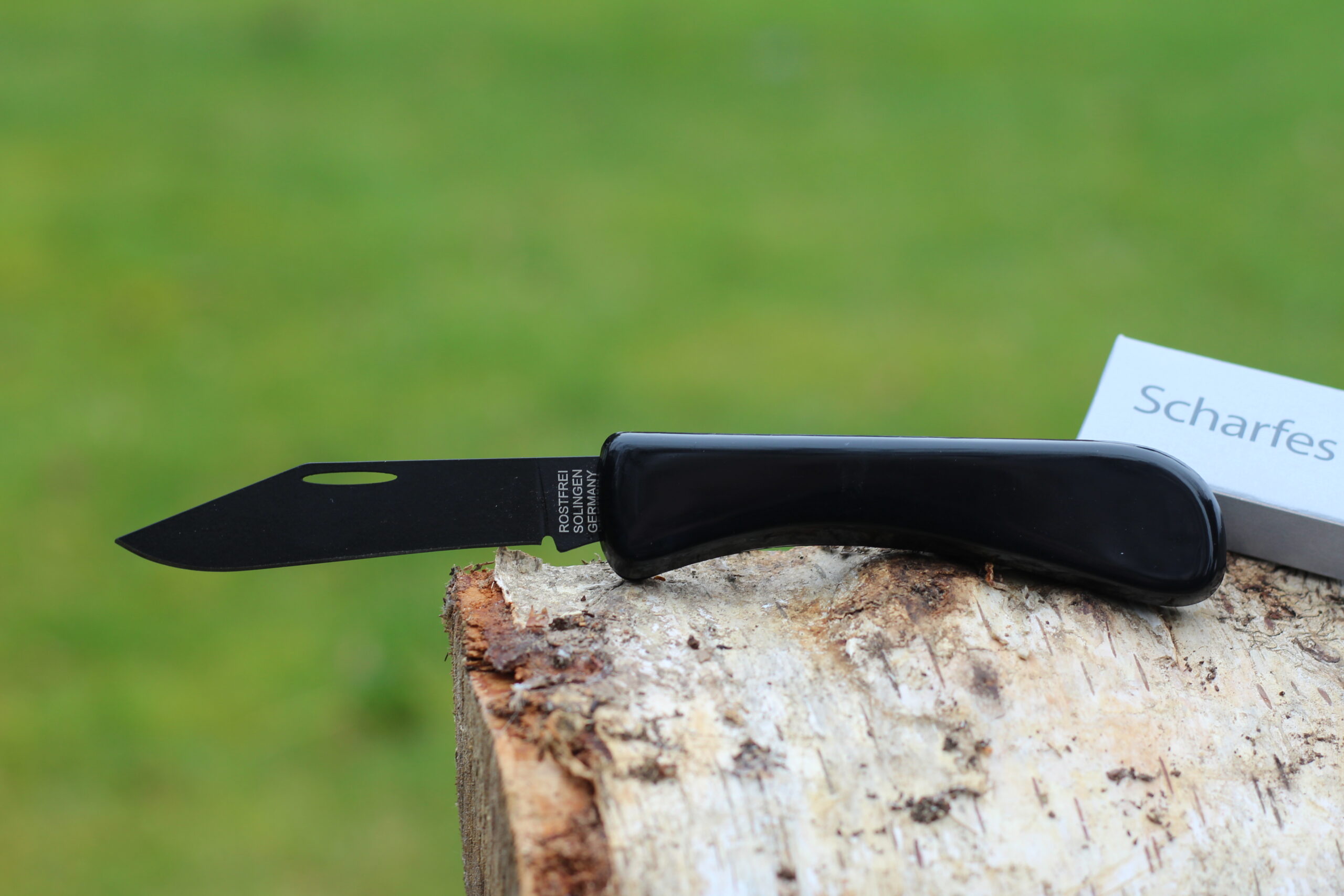 - Lieferung in Einsteck-Faltschachtel mit Aufdruck „Scharfes aus Solingen“.