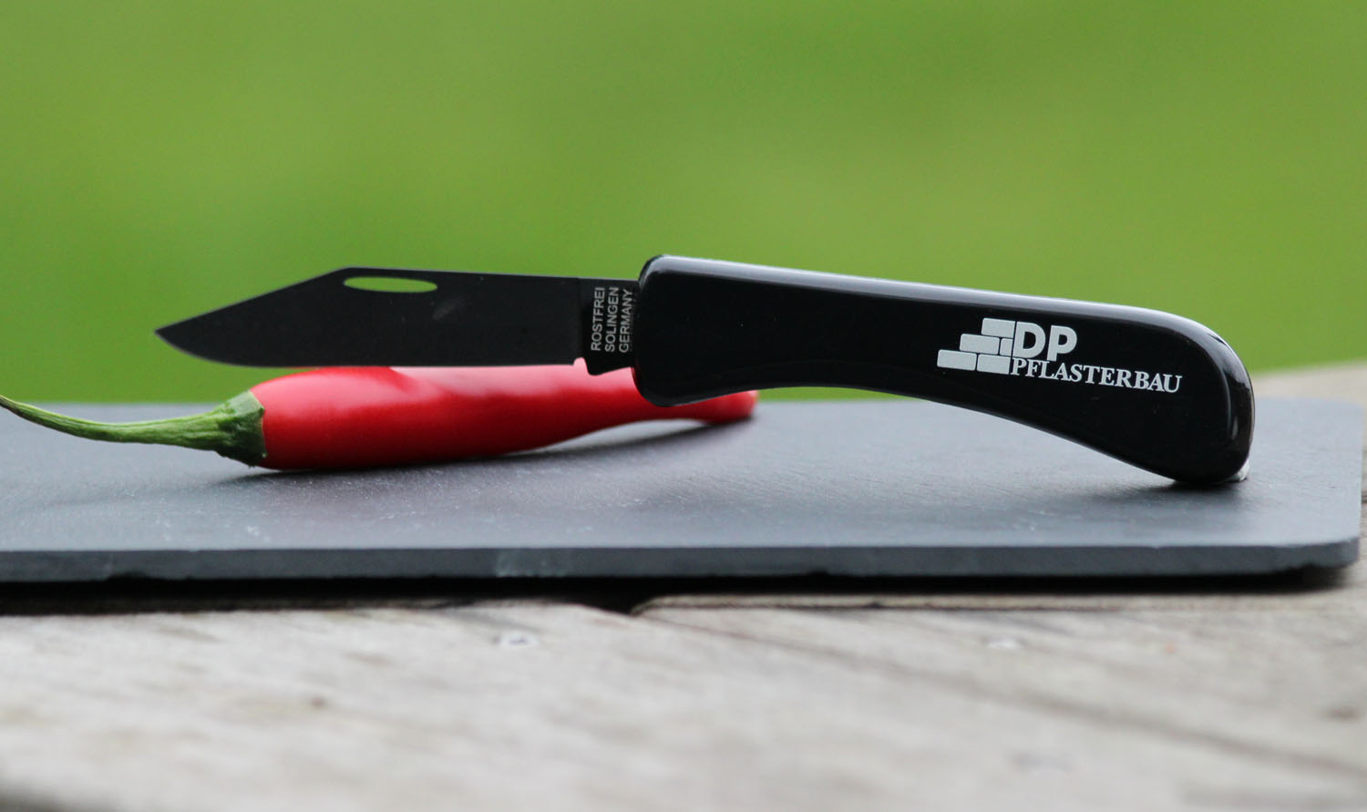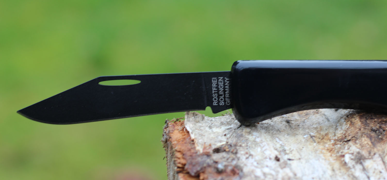 Dieses Taschenmesser (auch „Handwerkermesser“ genannt), verfügt über eine teflonbeschichtete Klinge. Die Beschichtung bewirkt einen besonders sanften Schnitt. Man(n) hat das Gefühl, die Klinge schneidet und gleitet besonders leicht und angenehm. Die Klinge ist natürlich auch rostfrei und es macht ihr nichts aus, wenn sie mit Wasser in Berührung kommt. Die Klingenlänge beträgt etwa 8 cm. Gefertigt wird dieses Taschenmesser in der Klingenstadt Solingen und darf deshalb auch das geschützte Attribut „Made in Solingen“ tragen.